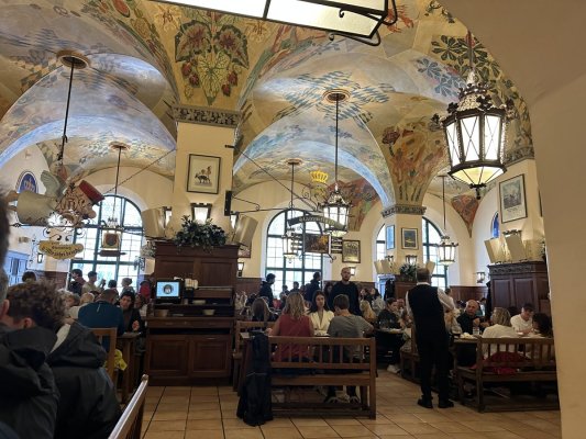 It's not the first time I've been in Hofbräuhaus I've been in both Munich and Berlin. But, every time this place surprises me - the ... Ще It's not the first time I've been in Hofbräuhaus I've been in both Munich and Berlin. But, every time this place surprises me - the number of people, the amount of beer drunk, insanely delicious German dishes, beautiful waiters. And the building itself has such an atmosphere that you want to sit and enjoy everything around.