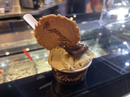 Questa è stata la prima volta che ho visitato un negozio di caramelle Lindt. Così ... Ще Questa è stata la prima volta che ho visitato un negozio di caramelle Lindt. Così tanti dolci che ho voluto provare tutto. Gelato molto gustoso e caffè molto gustoso.