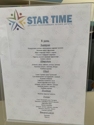 Наш сын уже второй год ездит в Летний Лагерь "Star Time" и для нас его ... Ще Наш сын уже второй год ездит в Летний Лагерь "Star Time" и для нас его эмоции и желание вернуться в лагерь являются самым лучшим отзывом о лагере.