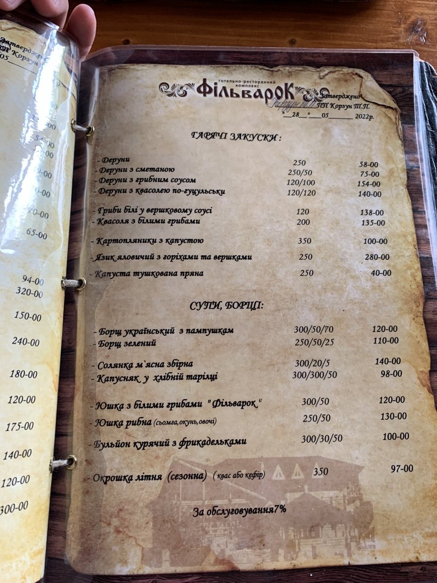 Неочікувано дуже слабка кухня і дуже дорого, без душі. Дуже розчарований. За три ніякі деруни ... More Неочікувано дуже слабка кухня і дуже дорого, без душі. Дуже розчарований. За три ніякі деруни 154 грн, це смішно. Це 100 відсотків не ресторан, рівень забігаловки.