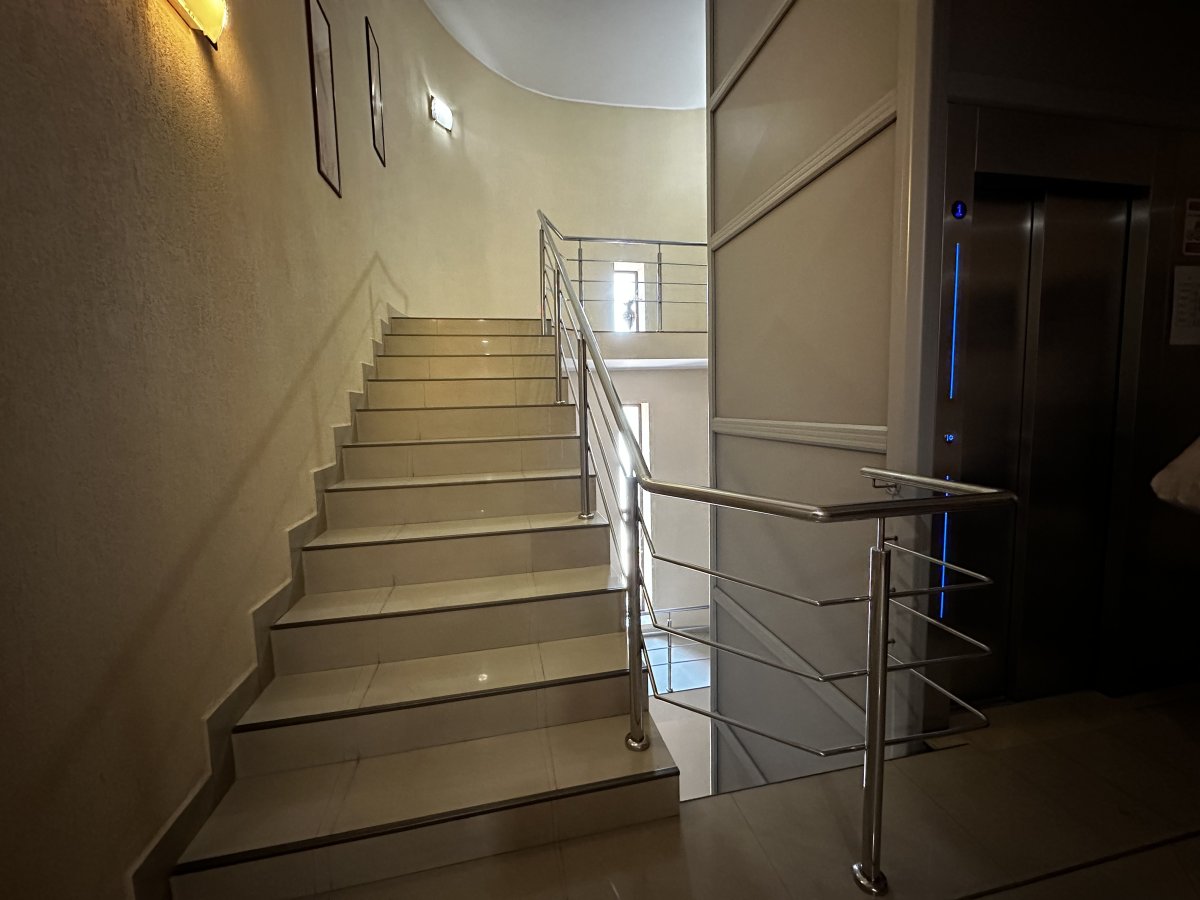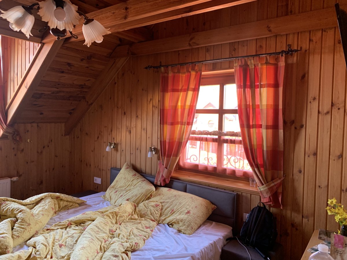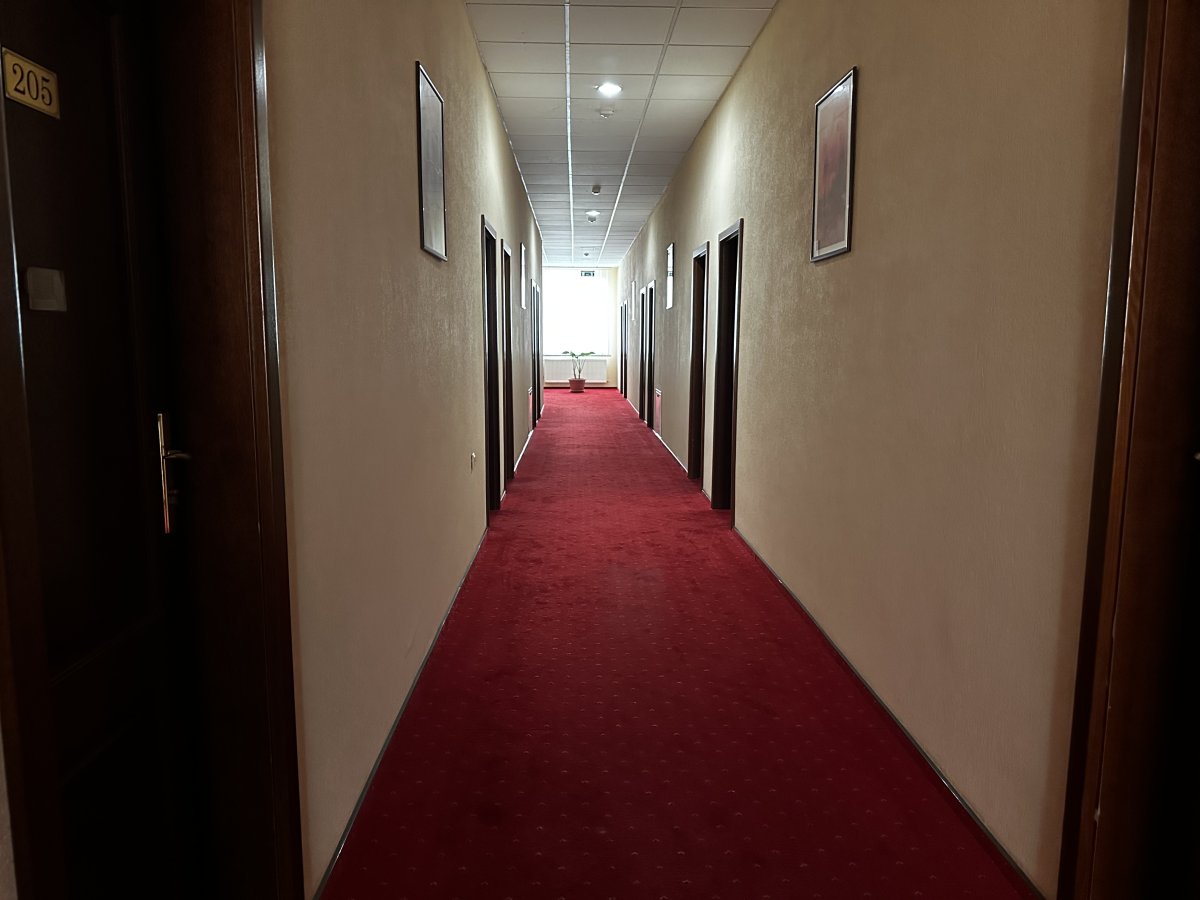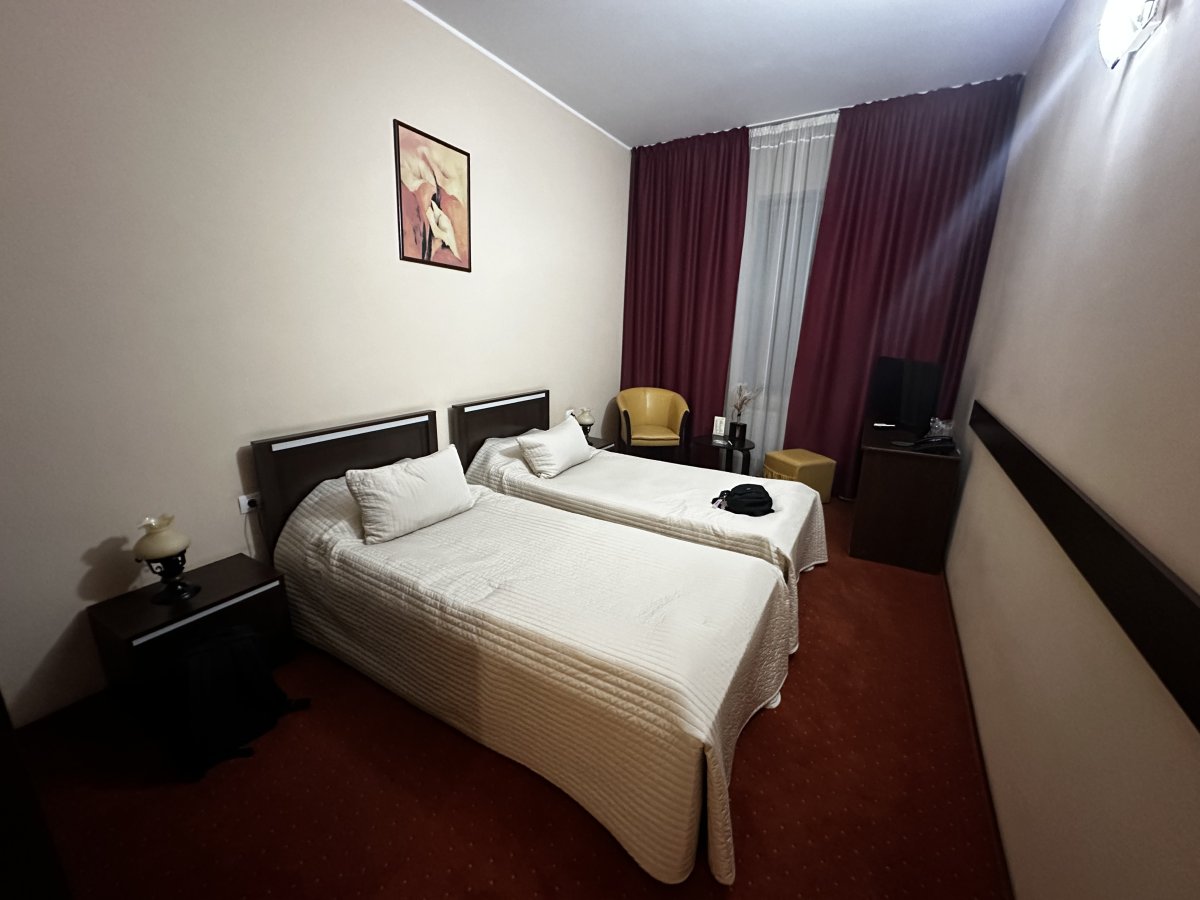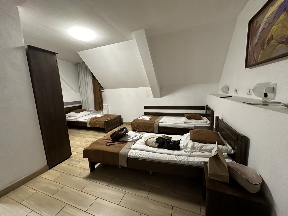 Номер тримісний коштував 700 грн, знаходився на останньому поверсі. Двері наче з картону, шумопоглинання - 0… кожен раз як хтось проходив повз наш номер, здавалося, що двері зараз вилетять.