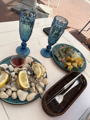 Сьогодні обіду в Анчосній на Софіївській Борщагівці. Світла не було, тому замовляли по скороченому меню. ... More Сьогодні обіду в Анчосній на Софіївській Борщагівці. Світла не було, тому замовляли по скороченому меню. Не дуже складну картоплю з оселедцем та устриці. Все винесли швидко, все було смачно, особливо охолоджене бочкове просеко.