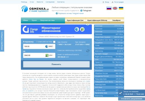 Крутой сервис для обмена денег. Всегда хороший курс, особенно если выводить Webmoney. Сервисом пользуюсь лет 5 точно, никогда не подводили. Сегодня платёж пришёл буквально за ... More Крутой сервис для обмена денег. Всегда хороший курс, особенно если выводить Webmoney.